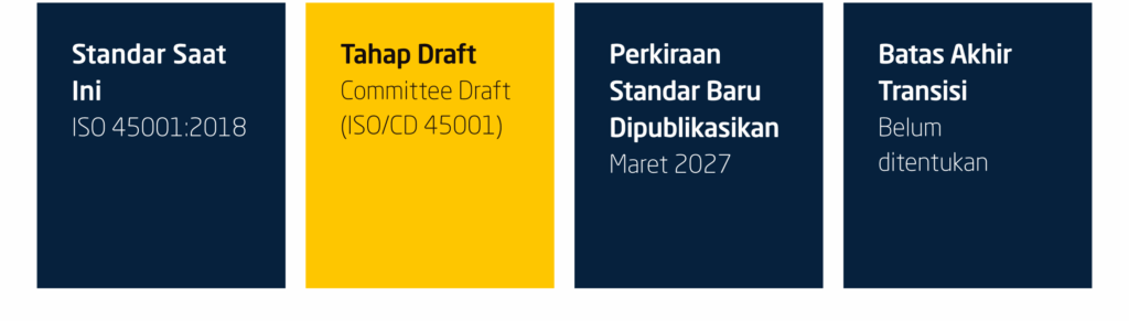 ISO 45001:2027 dijadwalkan sebagai revisi berikutnya dari standar Occupational Health & Safety Management System (Sistem Manajemen Kesehatan & Keselamatan Kerja). Pembaruan ini direncanakan untuk diterbitkan pada tahun 2027. Versi terbaru ini akan memperluas persyaratan K3 untuk mencakup aspek kesejahteraan mental, inklusivitas, dan kesiapsiagaan terhadap keadaan darurat iklim—untuk mencerminkan perubahan dalam cara pandang terhadap keselamatan di tempat kerja.
